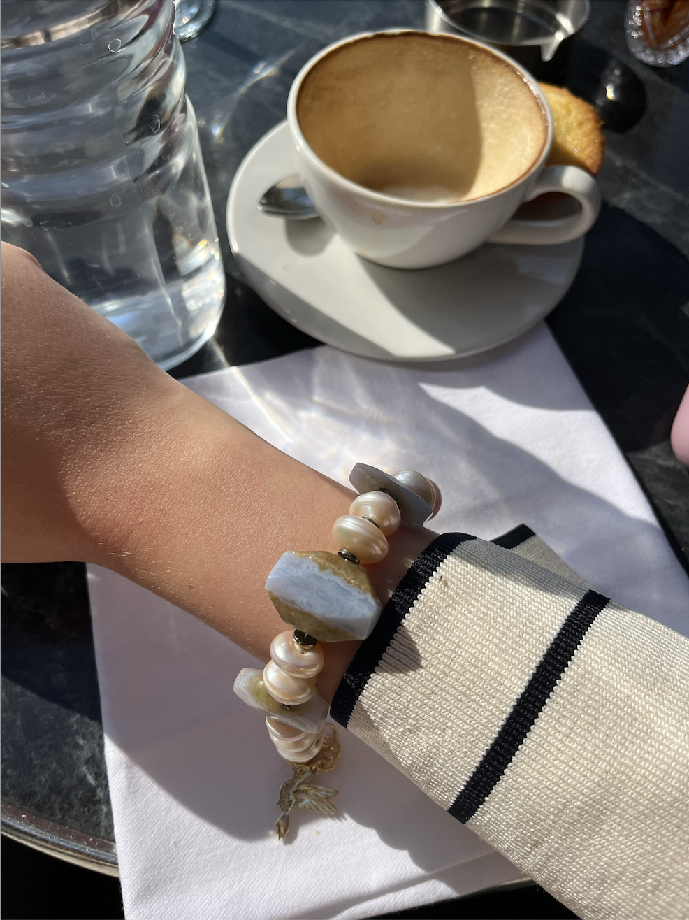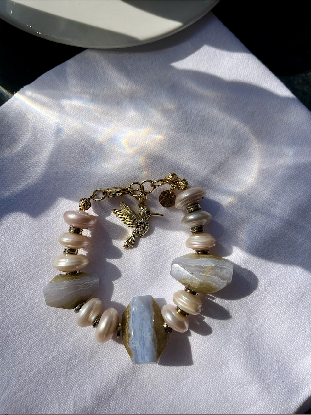 Bileklikte Kullanılan Mavi Kalsedon ve İnci