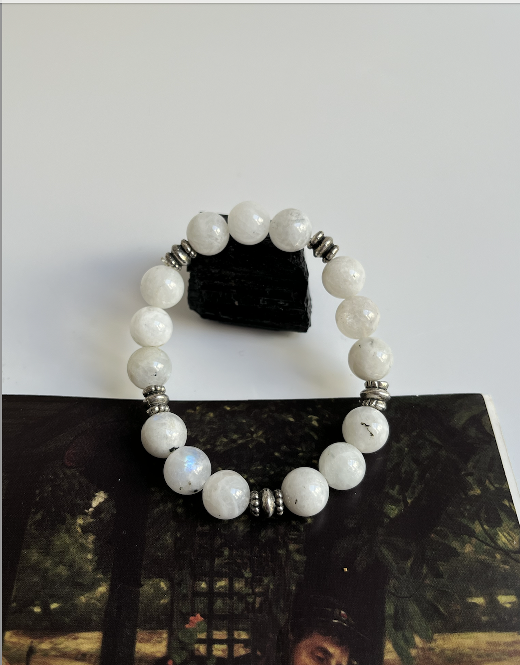 Ay taşı, yüzeyinde yumuşak ve sisli bir ışıltı taşır. Işığa tutulduğunda içinde kayıyormuş gibi görünen mavi-beyaz yansımalar oluşur. Bu etkiye “adülarans” denir. Erkek bileklik tasarımlarında genellikle daha sade, mat ya da doğal kesim formlar tercih edilir. Böylece taşın ışıltısı abartıya kaçmadan karakterli bir detay haline gelir.