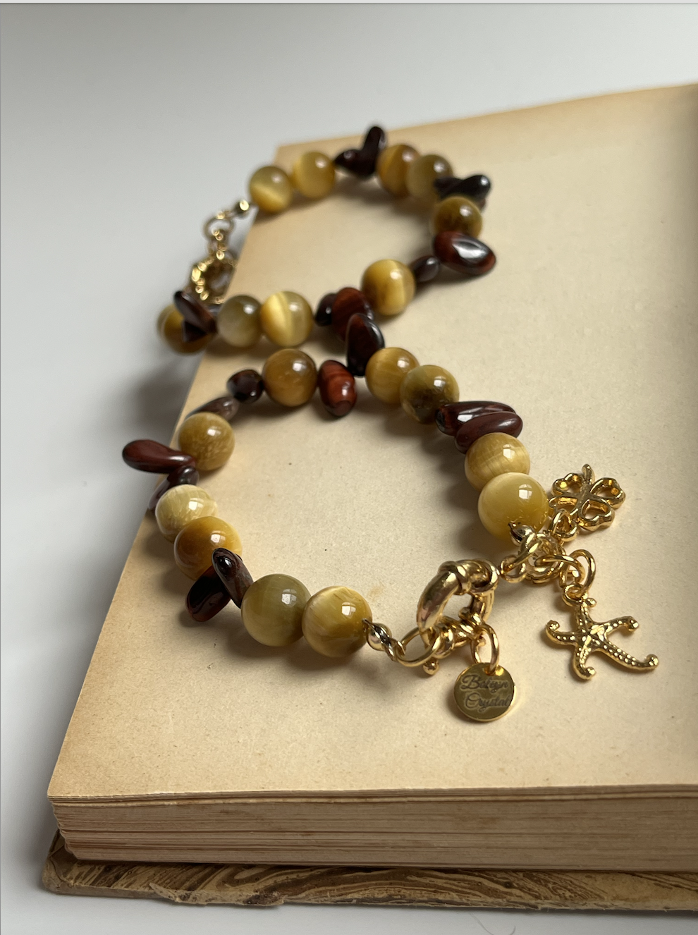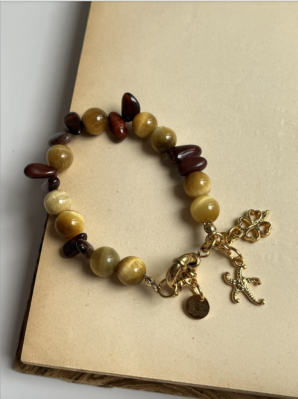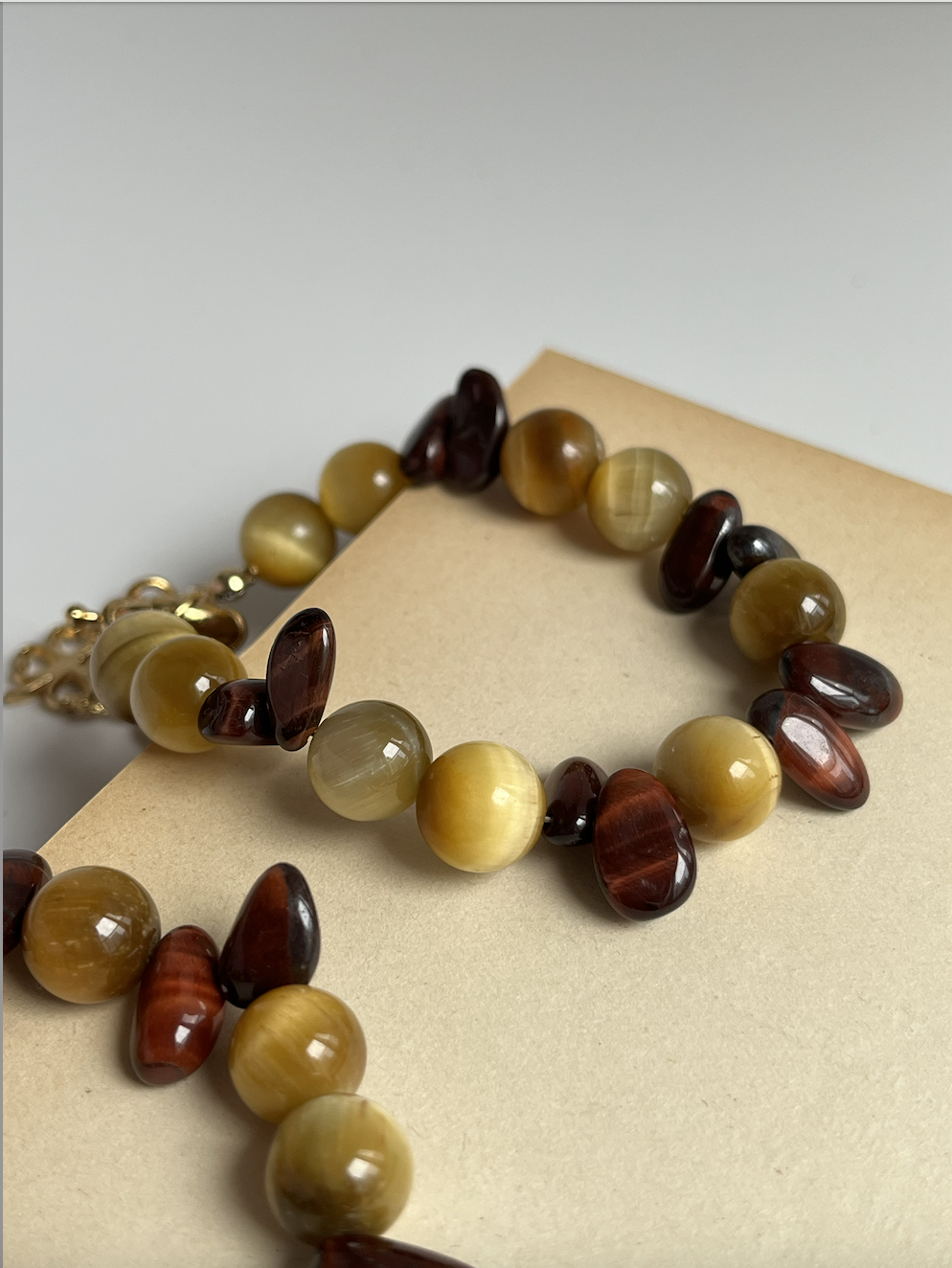 Kadın bileklik tasarımlarında kaplan gözü hem güçlü hem zarif bir denge sunar. Altın tonlu detaylarla birleştiğinde sıcak ve iddialı bir stil oluşturur. Daha minimal tasarımlarda ise sade ama karakterli bir aksesuar haline gelir.