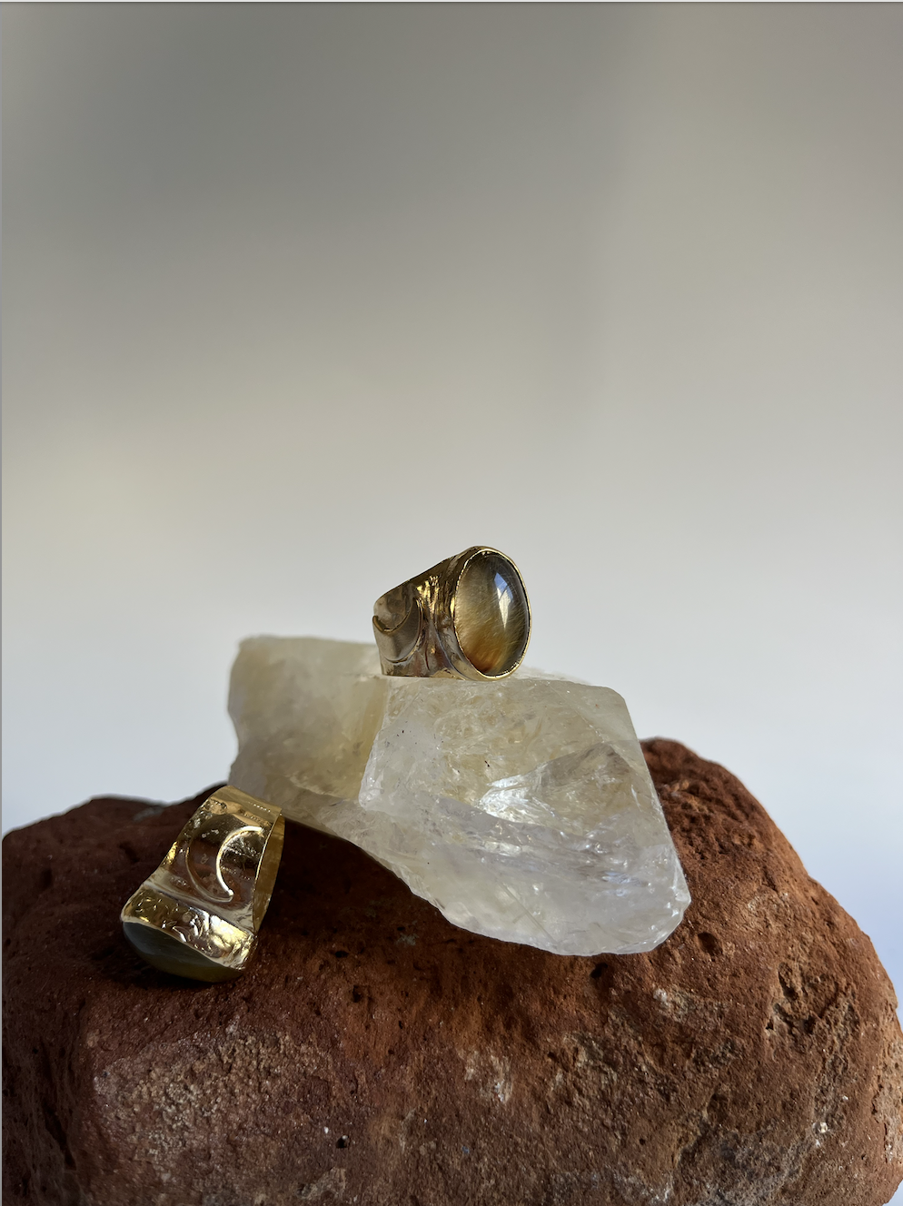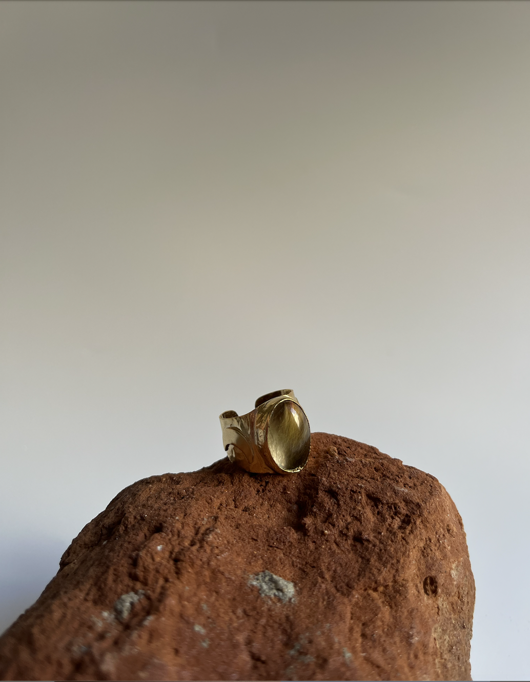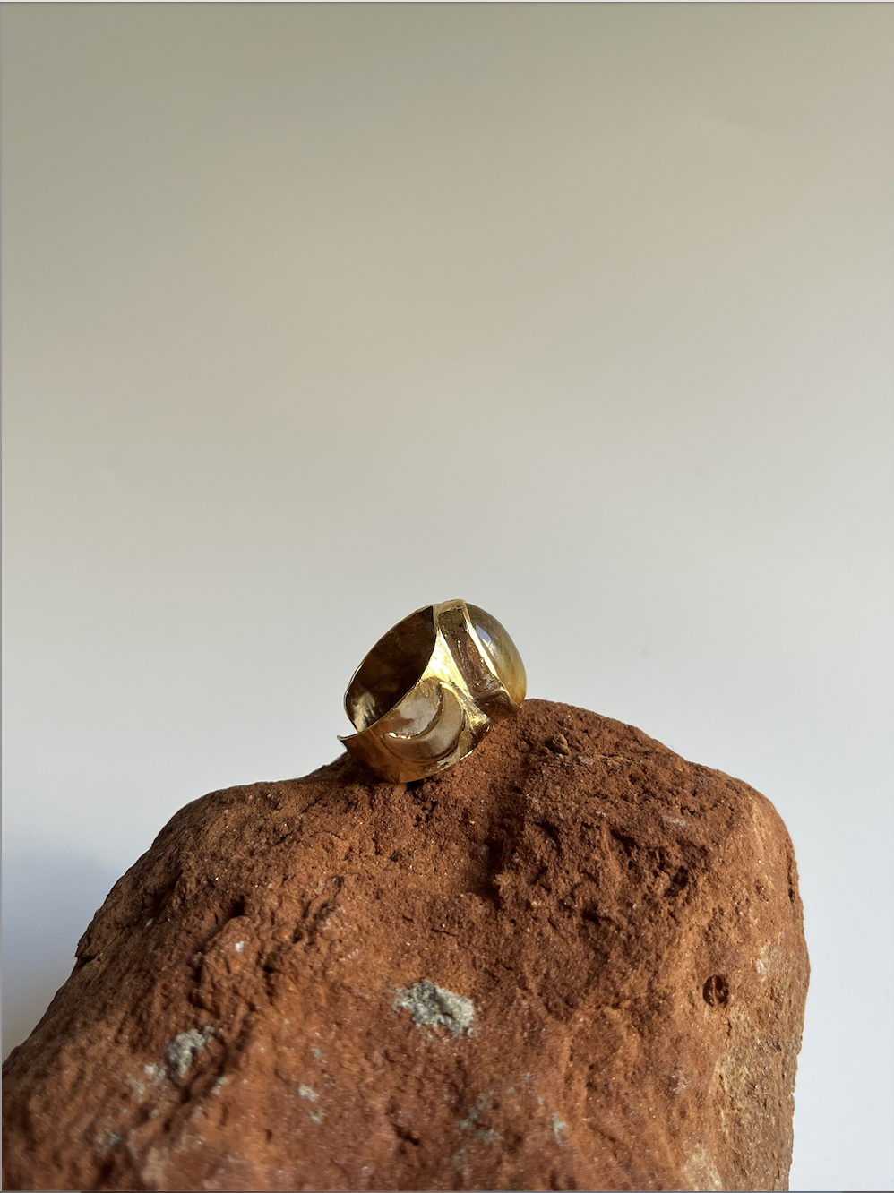 • Taşın içindeki ışık huzmeleri, Vesta’nın tapınaklarda hiç sönmeyen kutsal ateşini hatırlatır. Altın gövdesi, hem güneşin ilahi ışığını hem de yaşamı kutsayan alevi yansıtır. Yüzüğün yuvarlak formu ise Vesta’nın çemberini, evrenin bütünlüğünü ve koruyucu kalkanını simgeler.