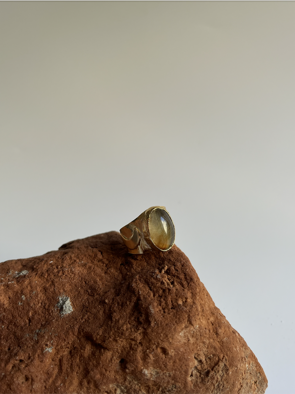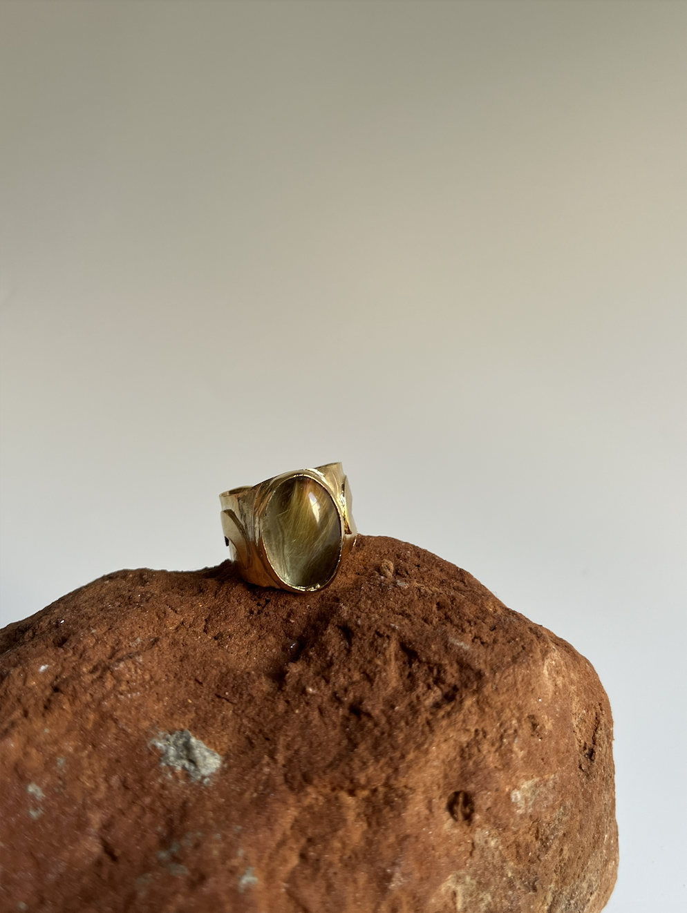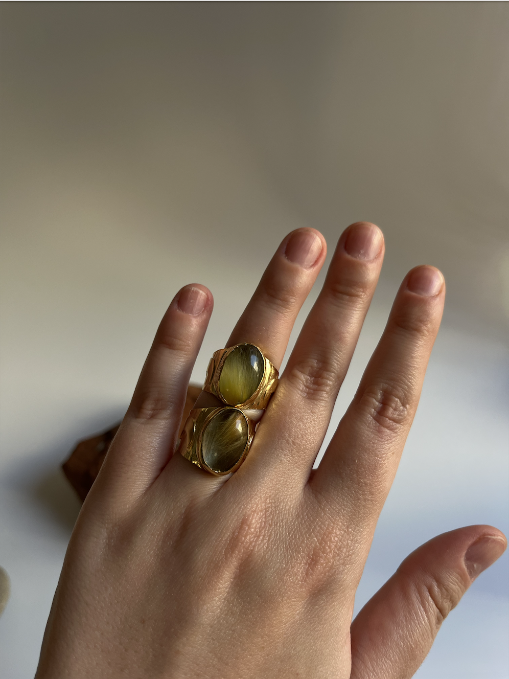 • Taşın içindeki ışık huzmeleri, Vesta’nın tapınaklarda hiç sönmeyen kutsal ateşini hatırlatır. Altın gövdesi, hem güneşin ilahi ışığını hem de yaşamı kutsayan alevi yansıtır. Yüzüğün yuvarlak formu ise Vesta’nın çemberini, evrenin bütünlüğünü ve koruyucu kalkanını simgeler.